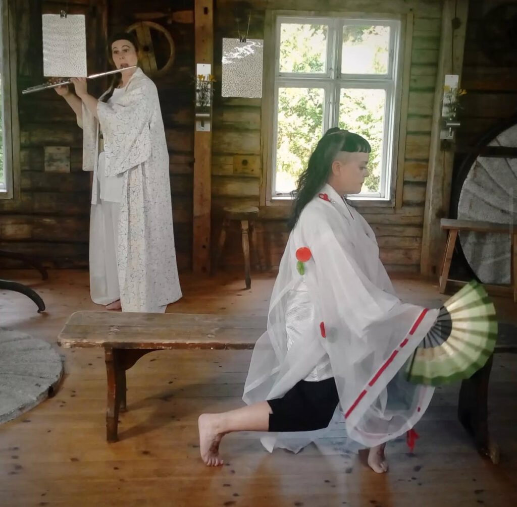 I mer än ett decennium har Skånberg och Svensdotter samarbetat inom japansk samtida dans, samtida konstmusik och improvisation. Deras verk har framförts i Botaniska Trädgården, på Island, Folkteatern och på Mauritzberg. Nu möts de mellan Lars Englunds skulpturer. Det blir ett poetiskt möte mellan dans, ljud och plats.